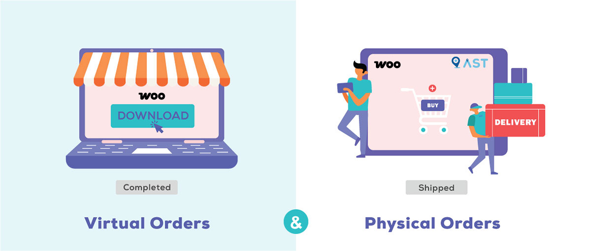 WooCommerce uses the Completed order status for all types of orders, regardless if the order is for Virtual products or physical products. But when your you sell both virtual and physical products on your store, you will want to have a different orders flow and email notifications for your Virtual orders than the orders flow for orders you ship.